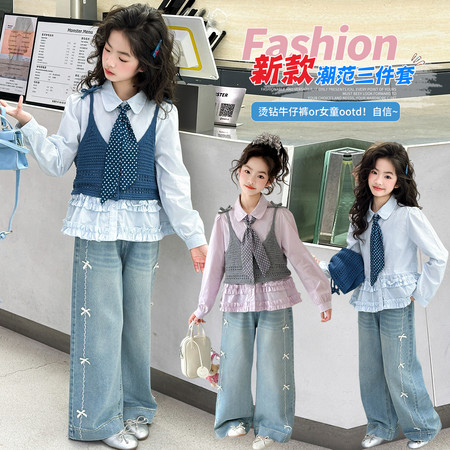 1*2下载视频“R199款吊带毛线马甲衬衫三件套”