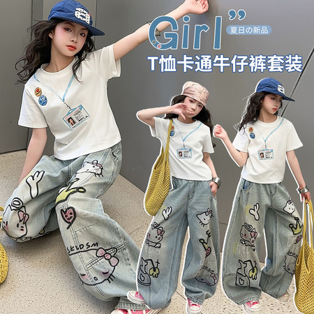 1*7收藏“R207款工牌数码印花T恤涂鸦牛仔裤套装”